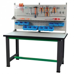 Cette catégorie vous permet de découvrir toutes nos offres en termes de grilles porte-outils. Les modèles que nous mettons en avant s’installent sans aucune difficulté sur une table équipée d'un plateau d’une épaisseur de 20 à 60 mm. La fixation de ces outils pratiques ne nécessite aucun outil puisqu’ils sont munis de vis avec volant de serrage. Fonctionnels, ces accessoires sont également dotés de panneaux porte-bacs. Ils intègrent en même temps des étagères et des casquettes destinées à la visserie et les autres petits objets. Pour une meilleure résistance, nos établis complets porte-outils et porte-bacs sont conçus avec un épais plateau stratifié de 40 mm et un piétement en acier électrozingué.
