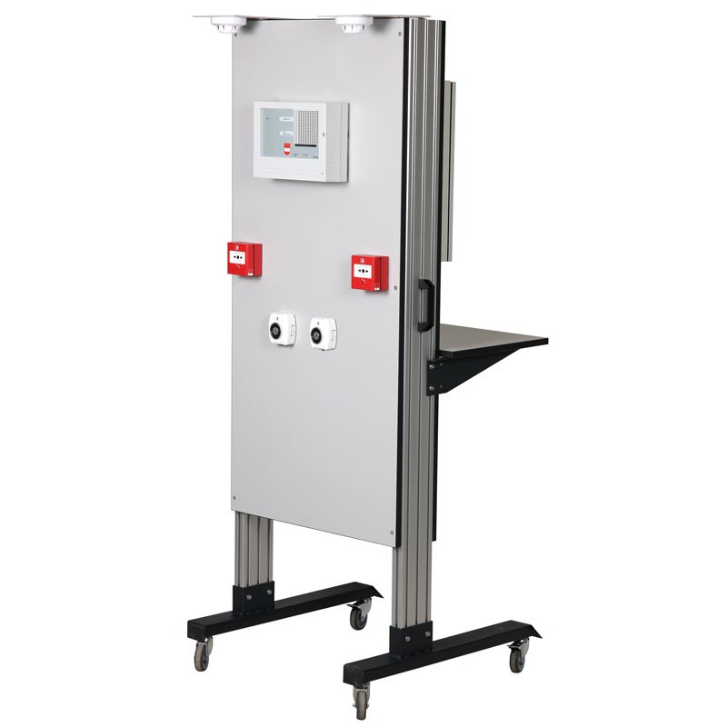 Panneau de gestion d’un détecteur autonome déclencheur «DAD». Le DAD détecte un incendie grâce à 2 capteurs optiques de fumée et 2 déclencheurs manuels. En cas d’alerte, 2 ventouses magnétiques libèrent l’ouverture des portes de secours. L’élève doit interconnecter les détecteurs optiques, les déclencheurs manuels, le DAD et la ventouse électrique. Ce câblage se fait sur un bornier où sont ramenées toutes les connexions repérées.
