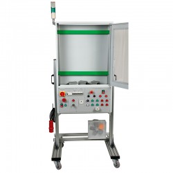 Cette partie opérative équipée d’une armoire de confinement permet, avec les grilles en option, d’étudier et de réaliser le câblage d’un système d’accès et de ventilation d’un tunnel équipé d’un système de régulation du taux de CO2 simulé par un potentiomètre. Elle comprend un moto-ventilateur chargé du renouvellement de l’air.