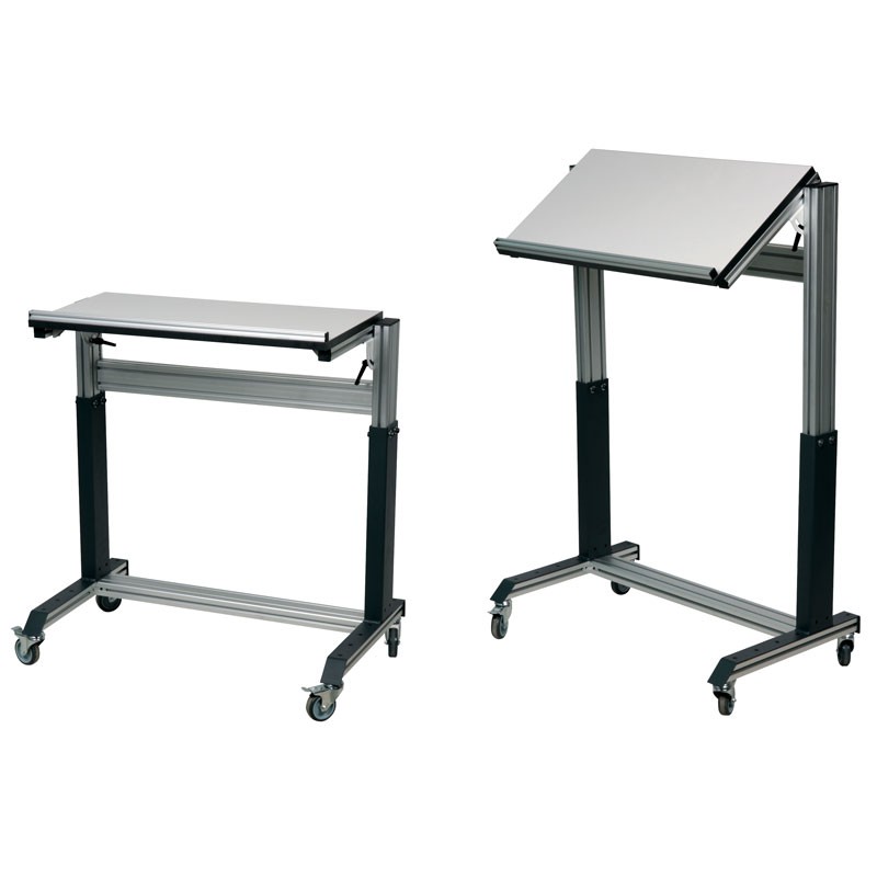 Dessertes techniques à hauteur réglable avec tablette inclinable.