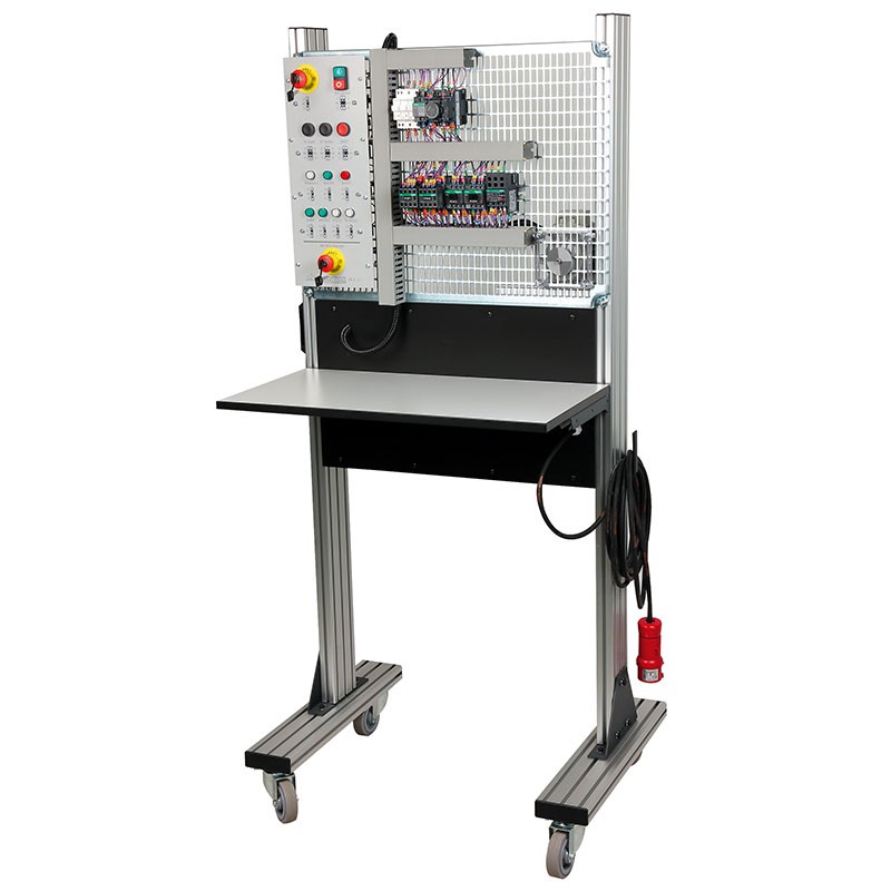 Maquettes permettant de réaliser des pannes en différents points sur une grille de câblage. Le câblage sur grille représente le démarrage Etoile / Triangle à double sens de rotation d’une machine asynchrone. La version ESSAI-DIAG2 est un système complet, composé d’une partie commande et d’une partie puissance en 3 X 24Vac, commandant un moteur asynchrone triphasé. La recherche de pannes est réalisée sur l’ensemble du circuit. Sur la version ESSAI-DIAG, seul le circuit commande est câblé et permet la recherche de pannes.